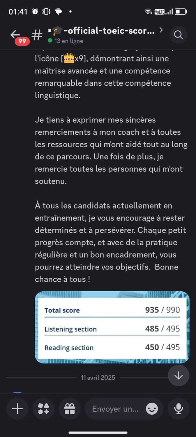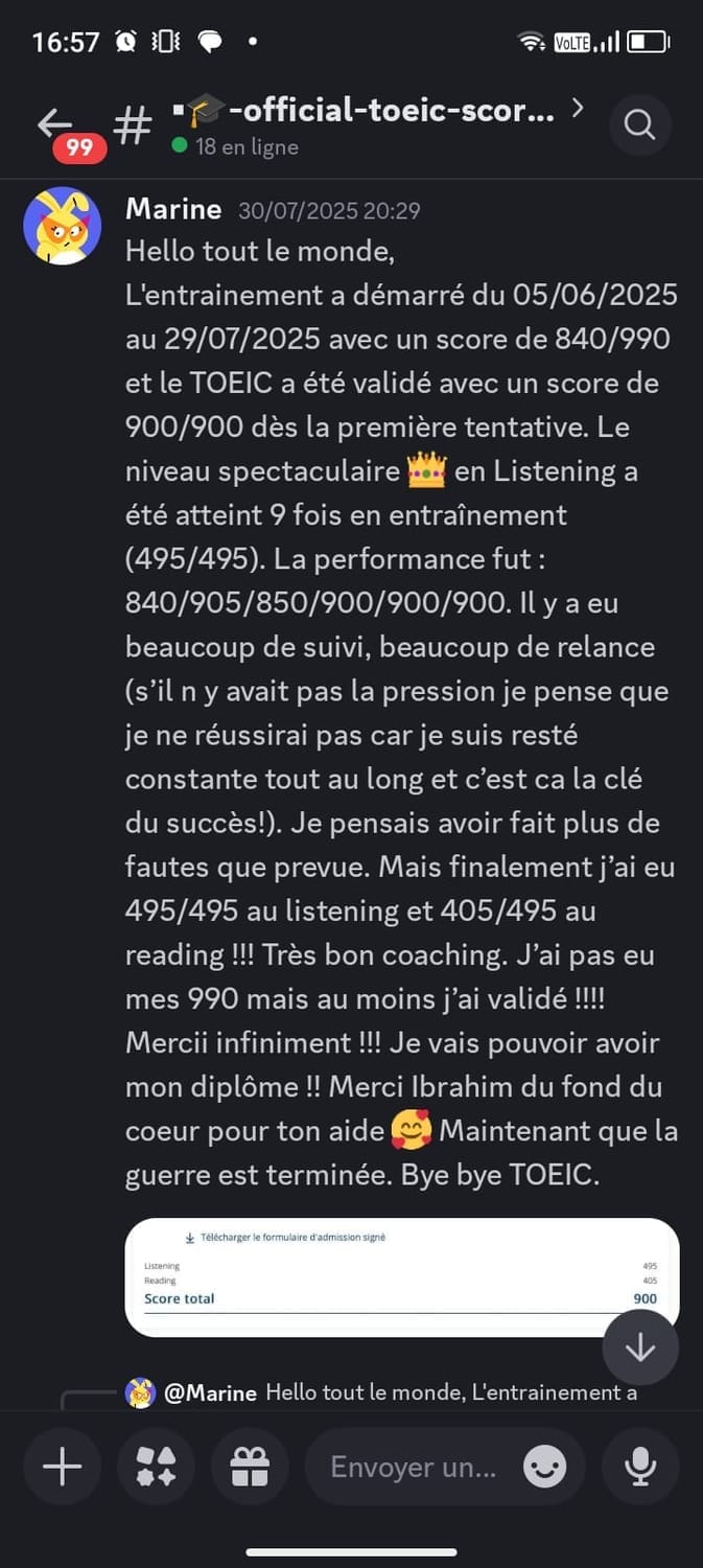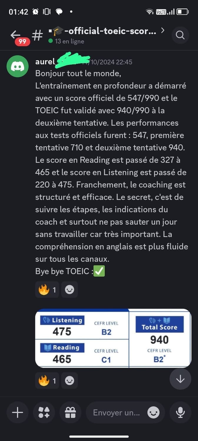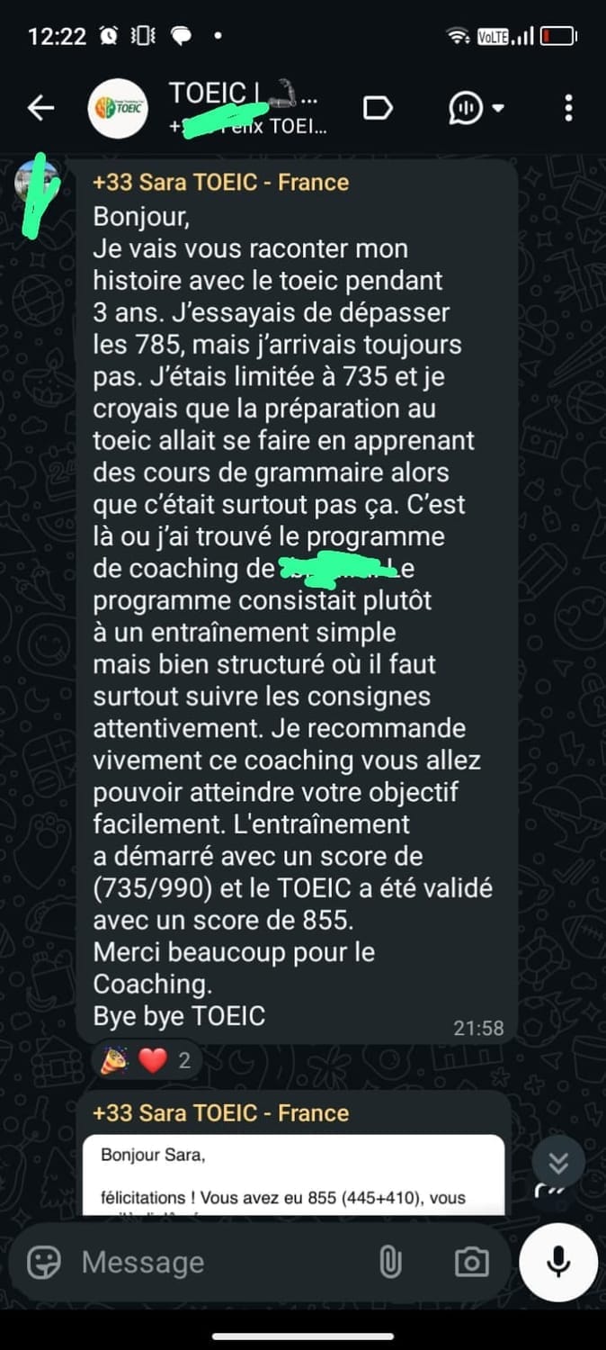 Durée du coaching ajustée en fonction de la date de votre test officiel du TOEIC.